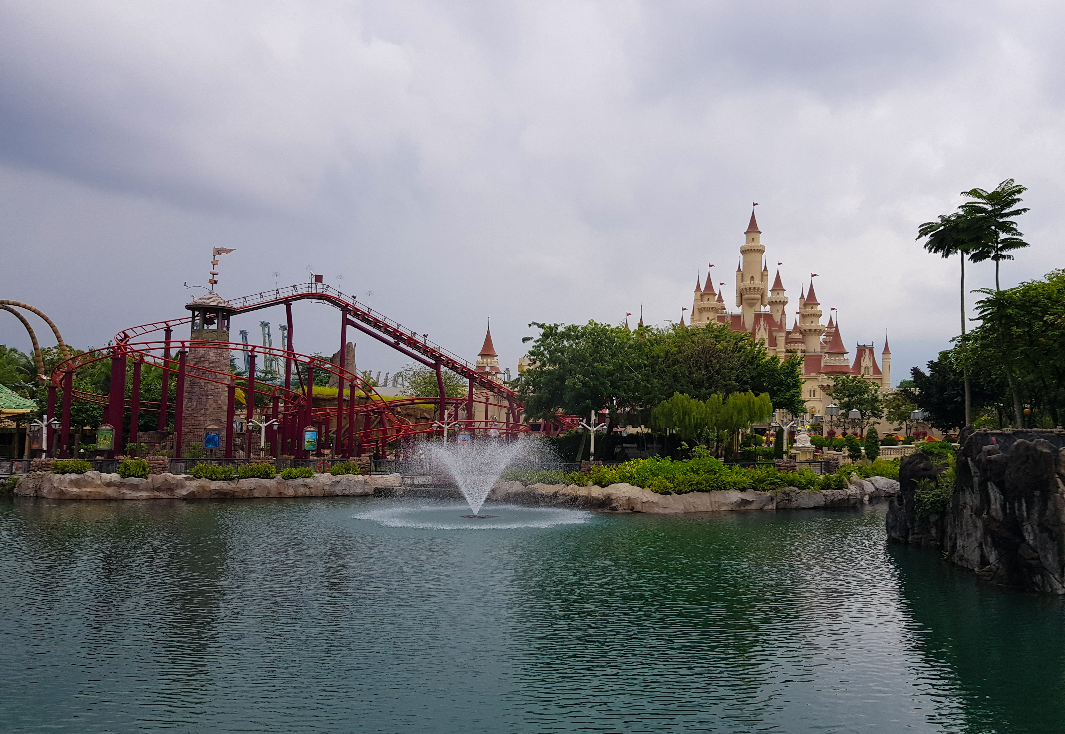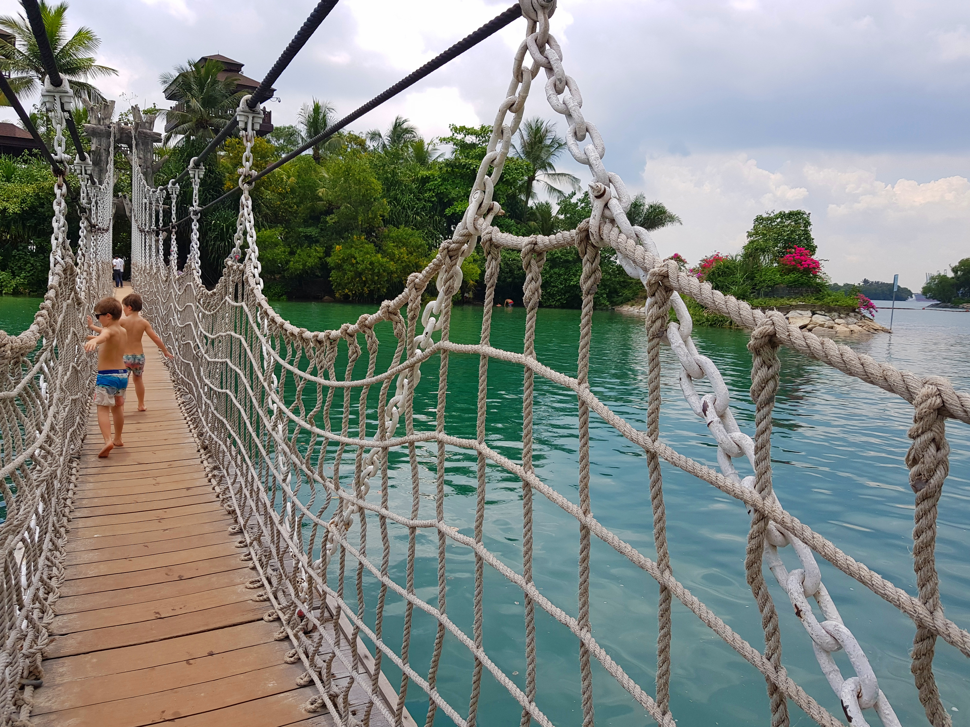 Ansonsten haben wir die Tage überwiegend kindgerecht verbracht, die ersten zwei Nächte auf Sentosa Island, einer künstlich aufgeschütteten Insel direkt vor der Stadt, auf der sich Strände, Wasserspielplätze und natürlich auch die Universal Studios befinden. Haben wir alles abgehakt, vor allem den Wasserspielplatz fand ich genial. Strand geht nicht besonders gut, weil es einfach zu heiß ist, der Sand glüht und die Wassertemperatur liegt bei knapp unter 28 Grad. Generell bin ich kein Fan tropischer Temperaturen mit so hoher Luftfeuchtigkeit, ich kann mir nicht erklären, wie die Asiatinnen es schaffen, dabei wie aus dem Ei gepellt auszusehen. Ich jedenfalls hatte nur noch weite Kleider mit möglichst wenig Stoff an und habe auf Schminke komplett verzichtet, weil nach fünf Minuten sowieso alles davongeronnen wäre.