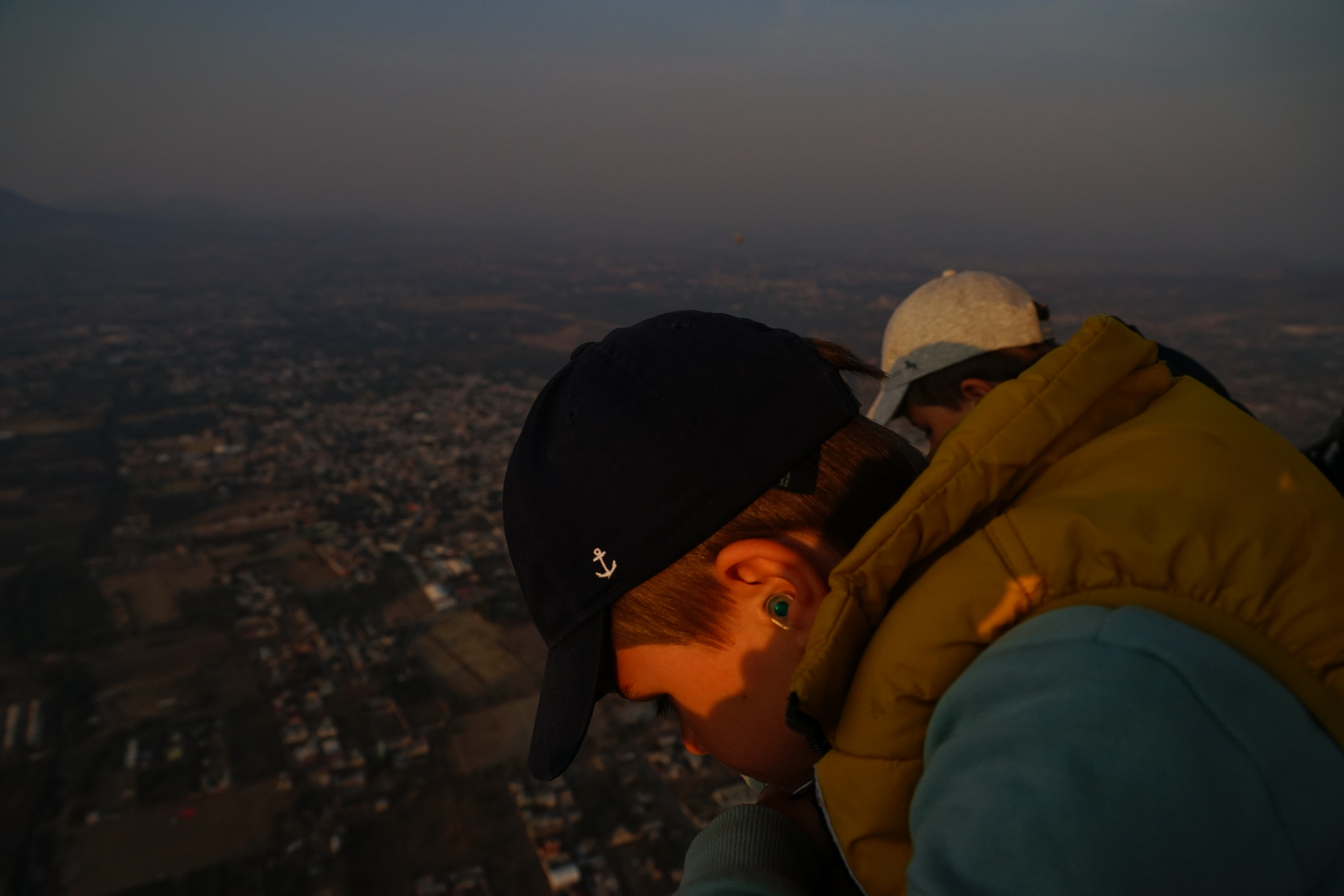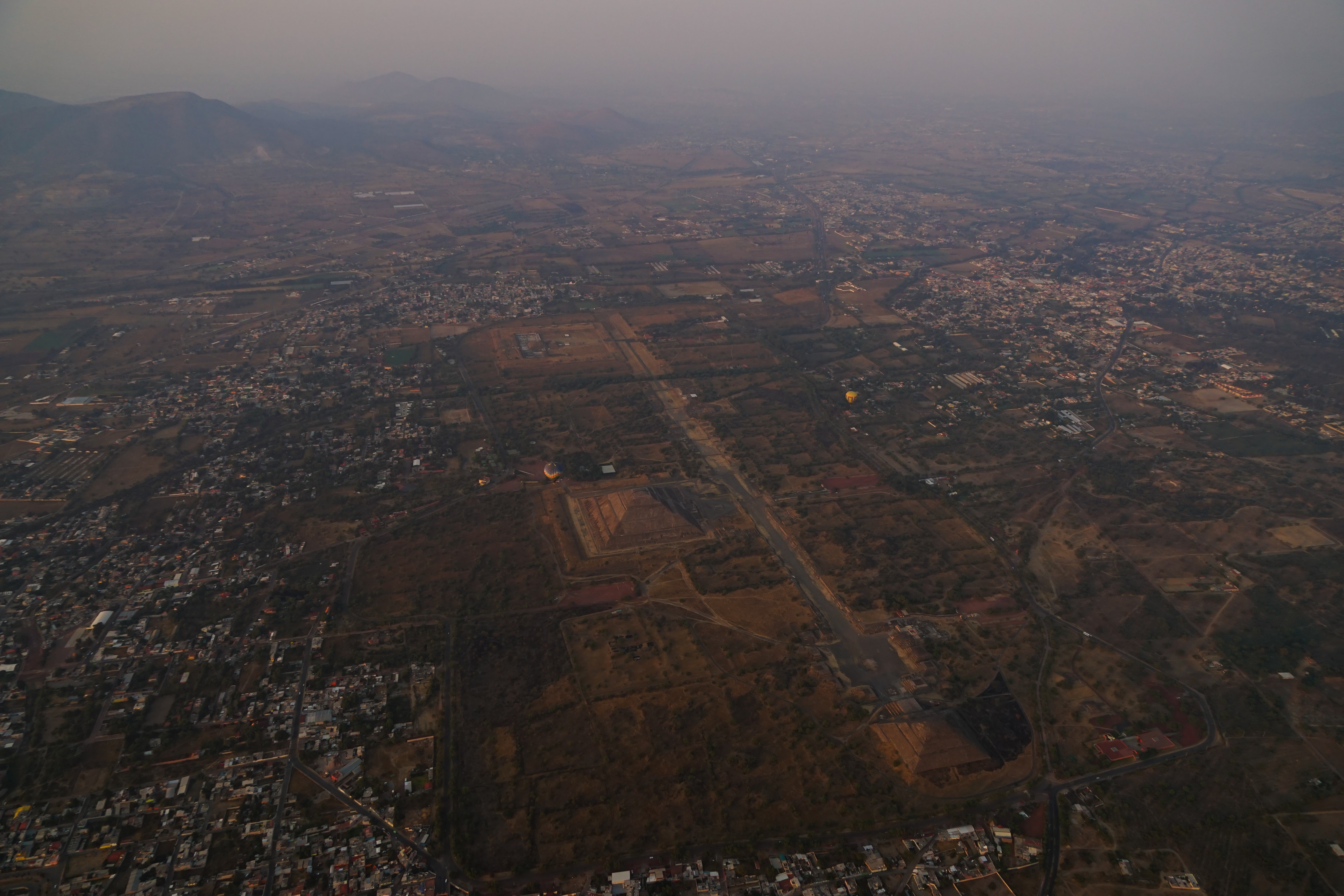 Wir wurden ziemlich früh im Hotel abgeholt und mit einem Kleinbus und anderen Touristen nach Teotihuacan zu den Pyramiden gefahren, wo die Ballons pünktlich zum Sonnenaufgang in den Himmel aufstiegen.