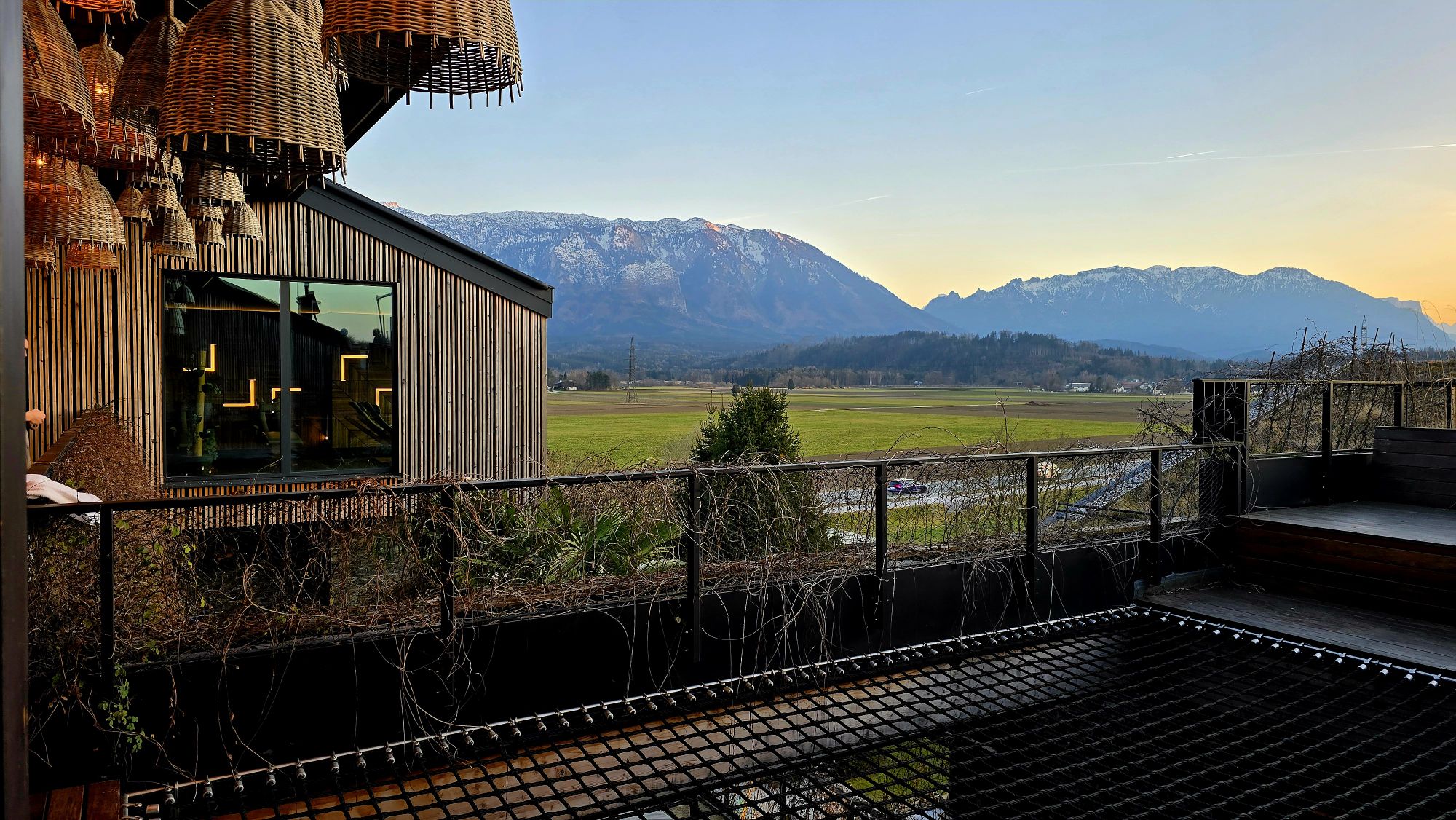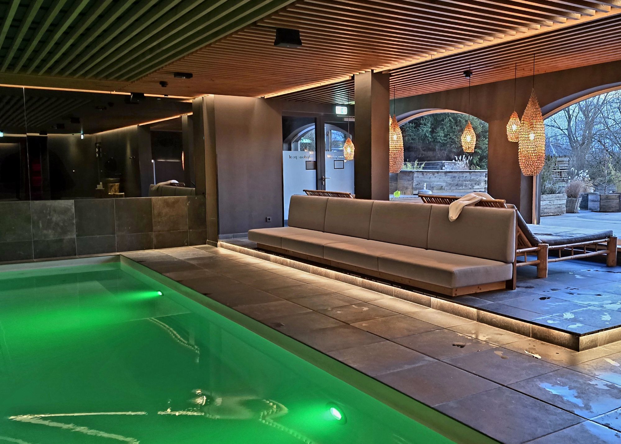 Das Hotel war auch klasse. Ich war erst ein bisschen wegen der Lage irritiert, hatte es mir einsamer und nicht an einer Bundesstraße neben einem Bauhof gelegen vorgestellt, aber die Zimmer und der Wellnessbereich waren sehr überzeugend. Der Outdoor-Erwachsenen-Pool unter der Discokugel und Palmen war super, man kam sich wie auf Bali vor und selbst ich konnte ohne nach Luft zu japsen einfach ins Wasser steigen, so angenehm warm war es. Im Sommer ist da vermutlich Strandclub-Party-Atmosphäre, aber jetzt im Februar war es schön leer.